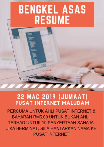 Kepada sesiapa yang berminat, sila hantar nama ke Pusat Internet Hilir Maludam. Bengkel akan dijalankan bermula jam 9.00 pagi sehingga 12.00 tengahari.