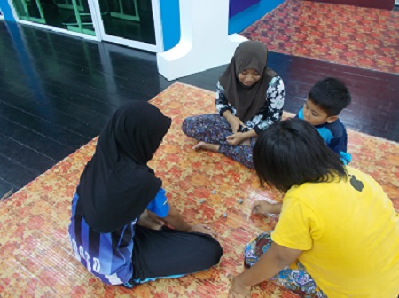 Bersantai sambil bermain batu seremban di ruang rehat Pusat Internet 1Malaysia Kpg Hilir Maludam.