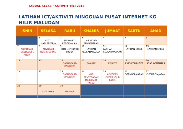 JADUAL LATIHAN & AKTIVITI MEI 2018