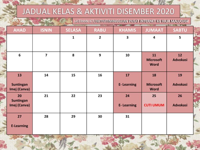 Jadual Kelas dan Aktiviti Disember 2020