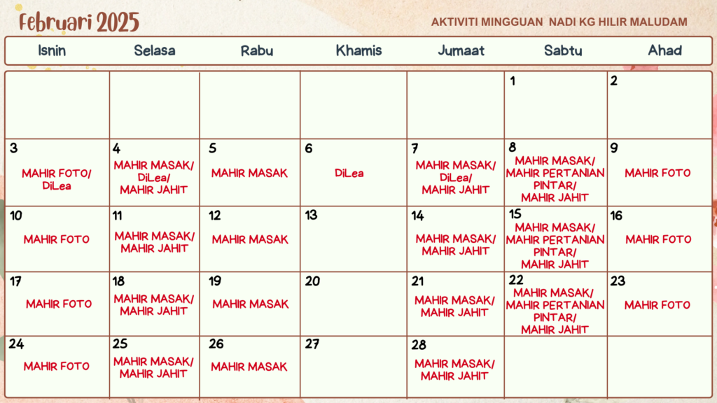 JADUAL KELAS DAN AKTIVITI FEBRUARI 2025