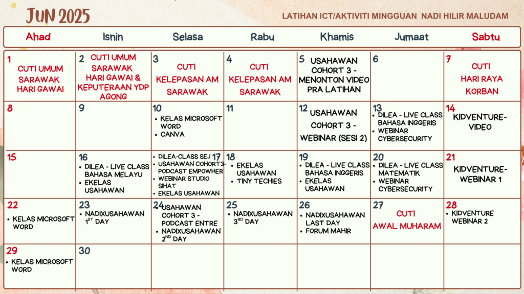 JADUAL KELAS DAN AKTIVITI JUN 2025