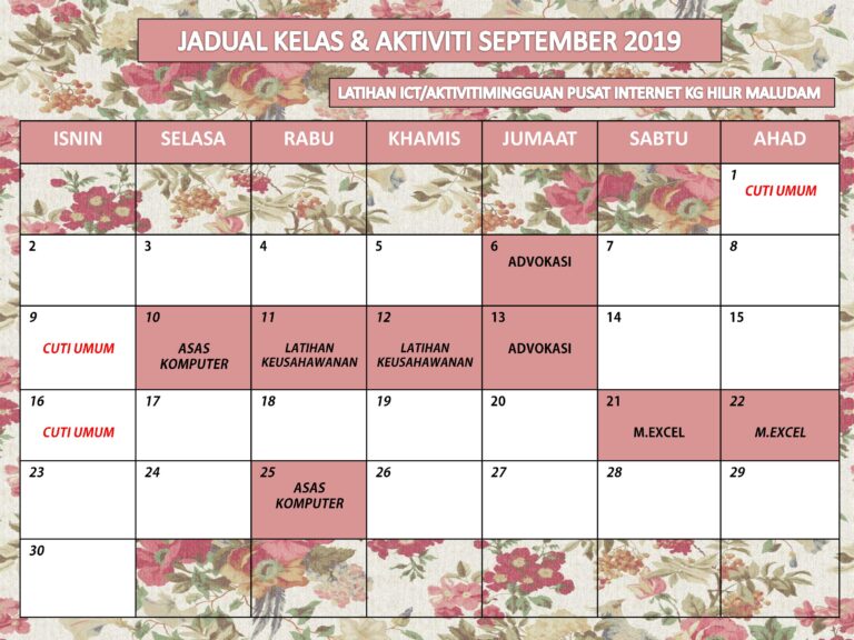 Jadual Kelas Dan Aktiviti September 2019