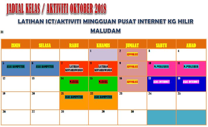 JADUAL KELAS / LATIHAN NOVEMBER 2018