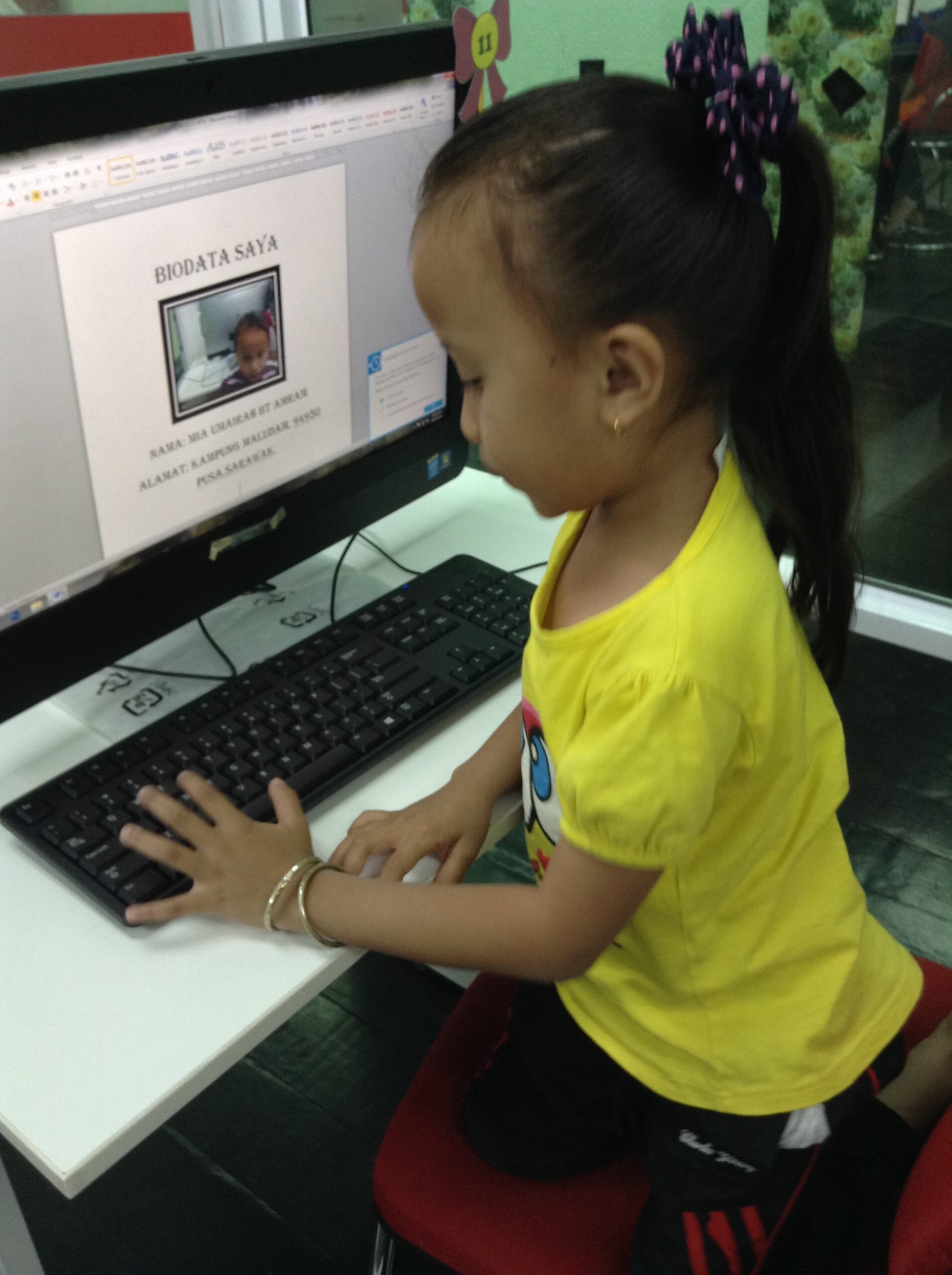 Bermula dengan mengikuti kakaknya ke Pusat Internet untuk menghadiri kelas, adik Mia mula menunjukkan minat untuk belajar komputer dan meminta ibunya untuk mendaftarkan namanya sebagai ahli. Dua minggu pertama selepas menghadiri kelas, adik Mia Umairah sudah mampu mengenali nama komponen-komponen komputer. Setiap latihan yang diberikan oleh petugas, adik Mia Umairah mampu selesaikan dengan sangat baik. Kini, adik Mia Umairah sudah menguasai Microsoft Word dan masih dalam proses pembelajaran Microsoft Excel dan Microsoft Power Point.