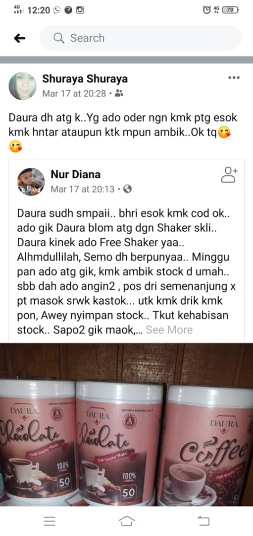 (Promosi perkhidmatan yang dilakukan di laman sosial (Facebook) iaitu di facebook Puan Shuraya sendiri.)
