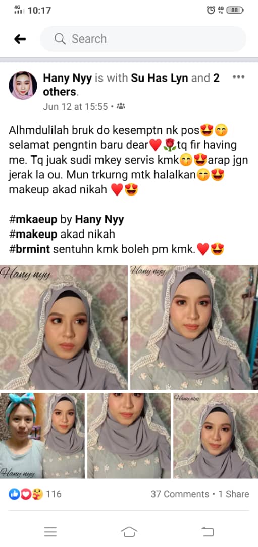 (Promosi perkhidmatan yang dilakukan di laman sosial (Facebook) iaitu di facebook persendirian Puan Nurani)