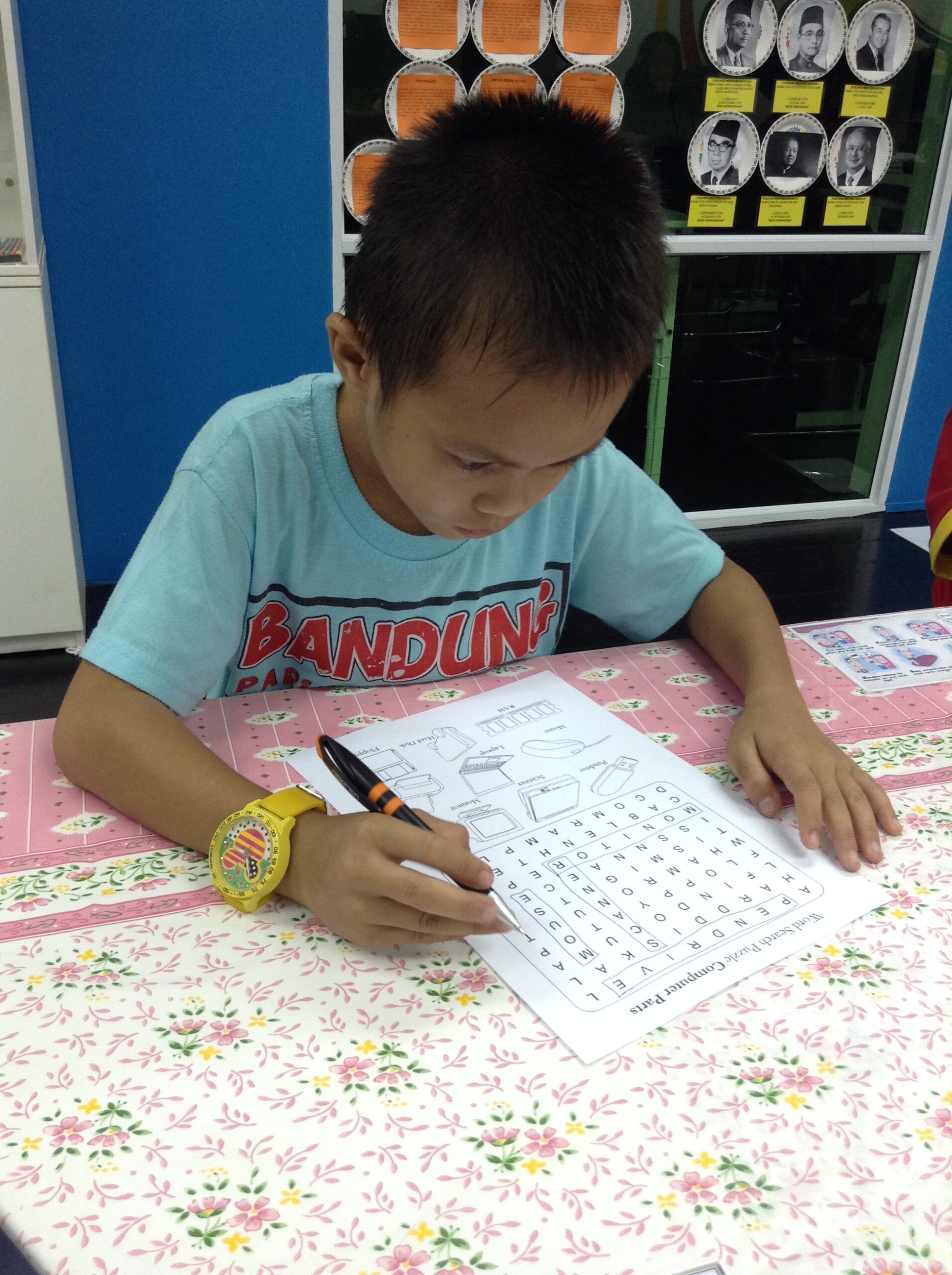 Antara aktiviti yang dilakukan semasa cuti sekolah ialah latihan “word search computer parts” bersama adik-adik kita yang masih bersekolah rendah. Latihan ini adalah untuk meningkatkan pengetahuan mengenai bahagian asas komputer dan menguji minda mereka.
